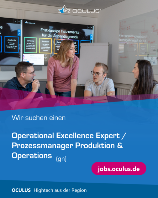 Die OCULUS Optikgeräte GmbH bietet Ihnen vielfältige berufliche Möglichkeiten! Wir sind ein international erfolgreiches Familienunternehmen mit über 500 Beschäftigten und Niederlassungen in mehr als 10 Ländern. Wir entwickeln und produzieren seit über 125 Jahren hochpräzise Geräte und Instrumente für die Augendiagnostik.